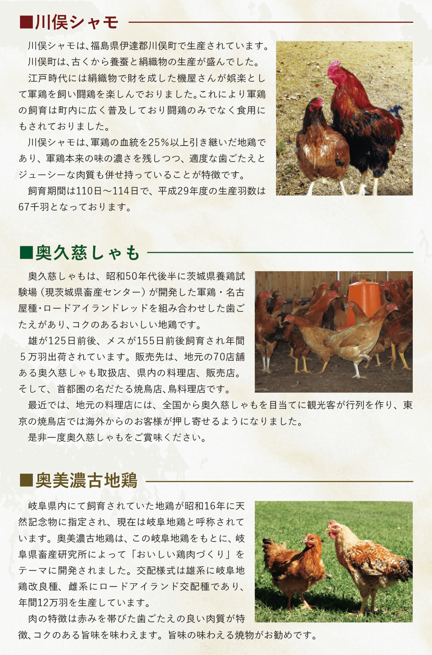 レシピに掲載した地鶏の特徴(レシピ集Ⅲ)